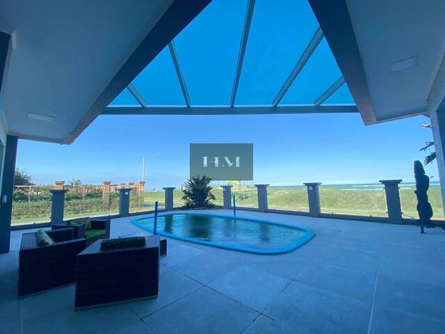 Mansão de esquina a beira mar, com vista exclusiva, composta por 5 suítes, sendo quatro delas no segundo andar, com sacada. A suíte principal, possui amplo terraço de frente para o mar com vista privilegiada, closet e banheira de hidromassagem. O living é amplo e em três ambientes, sala de estar com lareira, sala de jantar integrada a cozinha gourmet, lavabo, dependência de empregada, garagem fechada para dois carros, piscina na frente do mar, uma esquina com a melhor posição solar.
