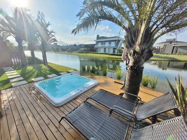 imagine você e sua família, desfrutando de tudo que o nosso litoral oferece! Excelente residência térrea à beira do lago, composta por quatro suítes, living com o seu pé direito mais elevado e totalmente integrado para os ambientes, lareira, churrasqueira, lavabo, cozinha sugestiva colocação de uma bancada, lavanderia, esquadrias em PVC, espera para Split, gás central, estacionamento para até dois carros, pátio frente e fundos! Sem falar que o condomínio oferece uma excelente infraestrutura de laser! Valor sujeito a alteração sem aviso prévio!